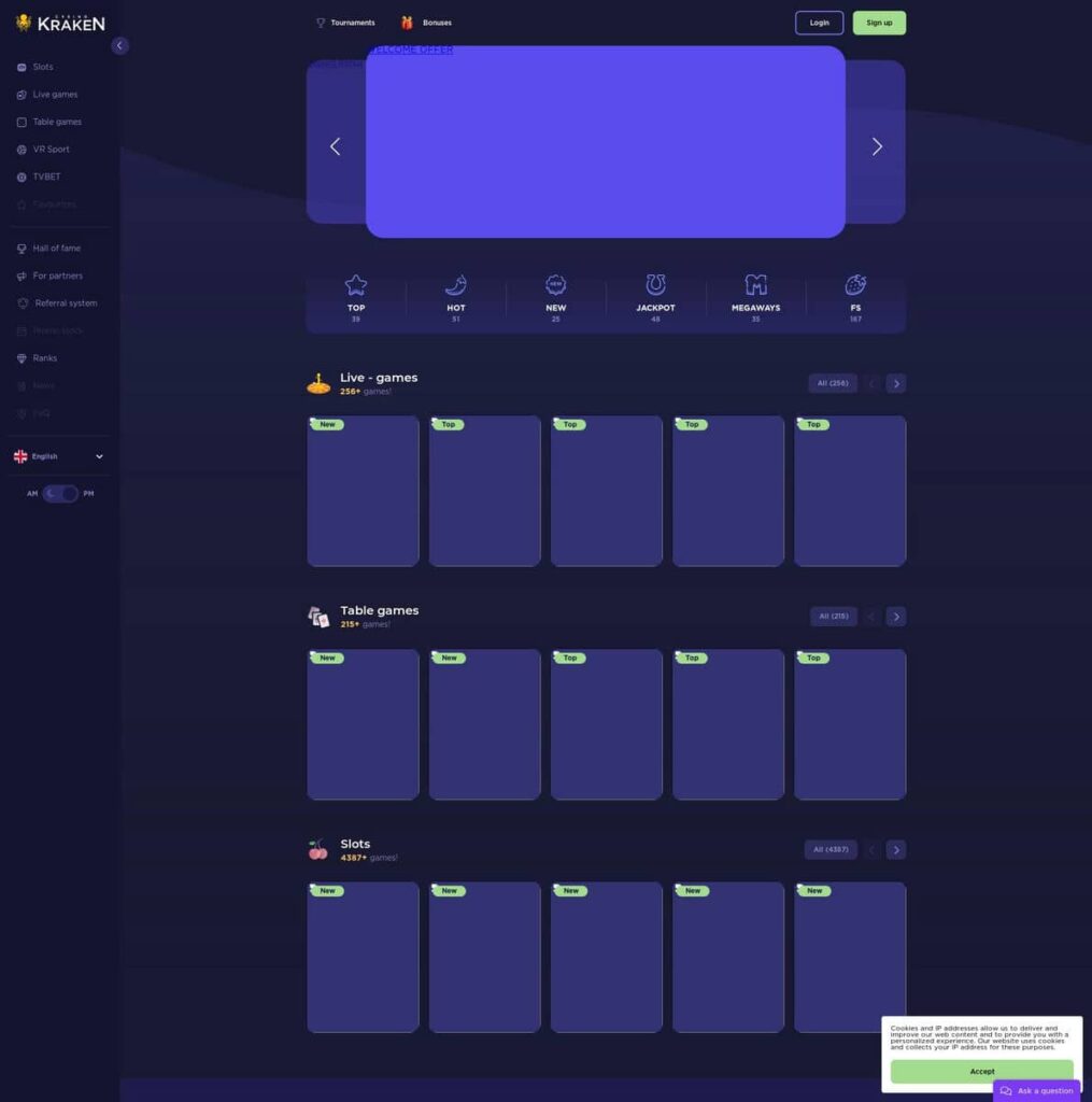 Казино Kraken предназначено только для совершеннолетних лиц., 18+. Приложите все усилия, чтобы сохранить мир и играть подотчетно. Все бонусы, указанные на Casino-ru.net, требуют наличия законной учетной записи в Kraken Casino.. Все стимулы нуждаются в реальном денежном депозите. Условия всамп; Применяются условия.