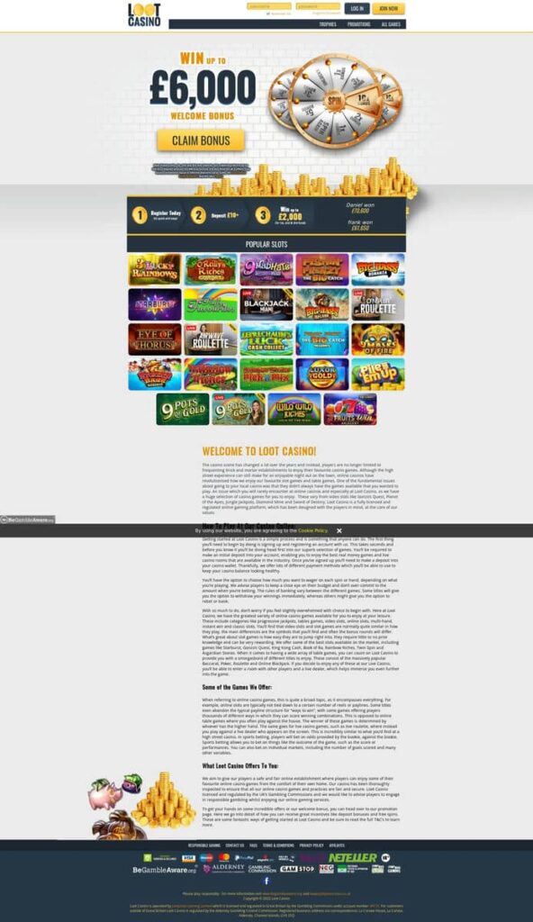 Лут Казино для людей, 18+. Не забывайте расслабляться и играть ответственно. Все бонусы, указанные на Casino-ru.net, требуют от вас создания действующей учетной записи в Loot Casino.. Для получения большинства бонусов требуется подлинный денежный депозит.. Условия всамп; Проблемы использования.