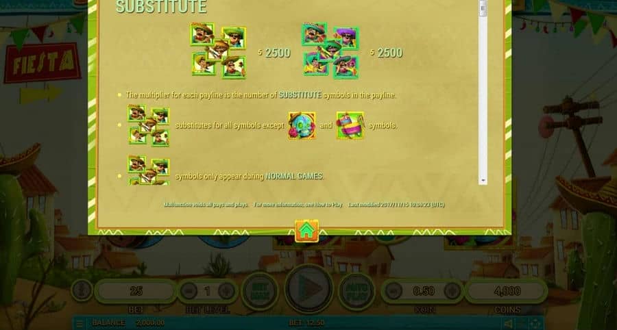 Кино-слот 5 Mariachis от игрового провайдера Habanero — это 5*3 игра с 25 ставки. Слот имеет RTP = 96,67% и MED.(?) отклонение уровня. Основные особенности игры, как правило,: Дикий, Бесплатные спины, Джекпот, Знаки разброса, Случайный множитель, поощрительные знаки.