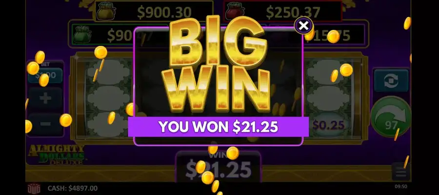 Almighty Dollars Deluxe — это устройство для получения интернет-долларов от производителя Design Functions Gaming.. Слот разработан таким образом, что вам не нужно собирать линии, чтобы выиграть, достаточно получить деньги на любой сотовый из 5×3. В видеоигре дополнительно представлены бесплатные вращения и расширенные джекпоты.. Есть 5 Варианты джекпота – фиолетовый, синий, зеленый, фиолетовый и золотой. Слот выполнен в фиолетово-золотых тонах и содержит приятную озвучку.. И вы точно будете играть в нее в любой точке мира, играя с ПК или смартфона..