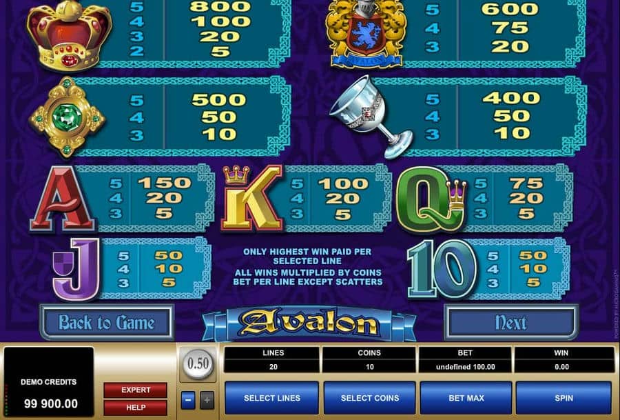 Если мы составим список предпочитаемых игровых автоматов от MicroGaming, Авалон определенно будет в этом списке.. Хотя он был выпущен еще в 2006, он легко подходит для выбора новых игровых автоматов. На основе мотива короля Артура, видеоигра наполнена неожиданными ситуациями и функциями, за которые нужно болеть.