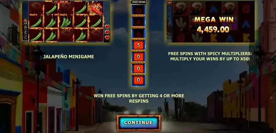Чтобы вызвать Режим бесплатных вращений в горящем чили, youre going to have to score at the least 4 successive cascading wins per spin. Вы будете награждены 12, 16, 20, 24 бесплатные спины в случае, если вы набрали 4, 5, 6, 7 последовательные каскадные выигрыши за спин соответственно. В течение Режим бесплатных вращений, дополнительно будет список множителей из х1 к х50, всякий раз, когда вы выигрываете, респин, скорее всего, будет вызван, каждый респин будет исключать множитель, начиная с самого дешевого из списка, если последовательность респинов заканчивается, ваш общий выигрыш от этого должен быть умножен на случайно выбранный множитель из оставшихся от записи. Возможна повторная активация Режим бесплатных вращений по подсчету очков 4-7 последовательные каскадные победы за бесплатное вращение, после этого вы получите эквивалентный широкий спектр дополнительных бесплатных вращений, как было указано ранее..