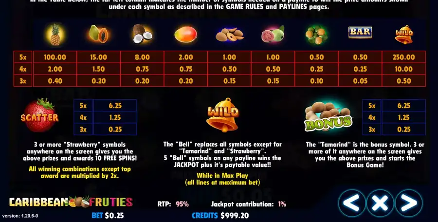 Чем ближе могут быть летние каникулы, более популярные игровые автоматы о тропических странах, как правило, среди клиентов онлайн-казино. Тематические слоты об умиротворении в теплых краях способствуют погружению в приятные сны. Например, Программное обеспечение для джекпота фактически представило слот Caribbean Fruties., что может привести к Карибским островам. В слоте Caribbean Fruties пять барабанов с картинками.. Столбцы имеют три символа. Играть в игровой автомат Caribbean Fruties можно с двадцатью пятью активными линиями.. Этот дизайн имеет все функции, типичные для компьютерного программного обеспечения Jackpot.: бесплатные спины, Джекпот, сумасшедшие символы, и бонусная игра с любыми вещами.