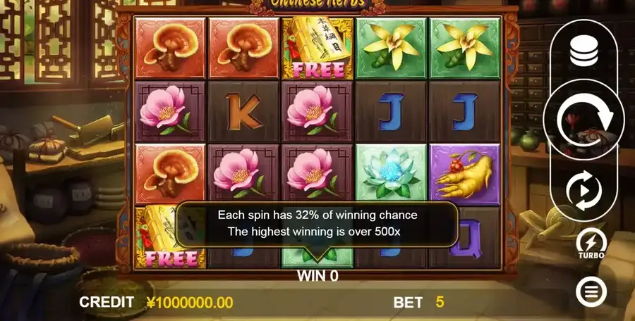 Китайские травы – интернет-слот о волшебных восточных лекарствах и целебных натуральных травах. Есть 5 * 4 базовая сетка или более 8192 побеждайте в этой онлайн-игре в азиатском стиле. Ставки покрывают что угодно от € 1 в € 500 за спин. В случае китайских натуральных трав, сообщается, что RTP 96.7%. Китайские натуральные травы имеют сумасшедшие символы и целый ряд 4 бесплатные игры, с 5, 7, 9, или 11 Бесплатные спины. Этот удивительный слот оптимизирован для игры на вашем рабочем столе., мобильный, и планшет, где бы ты ни был!
