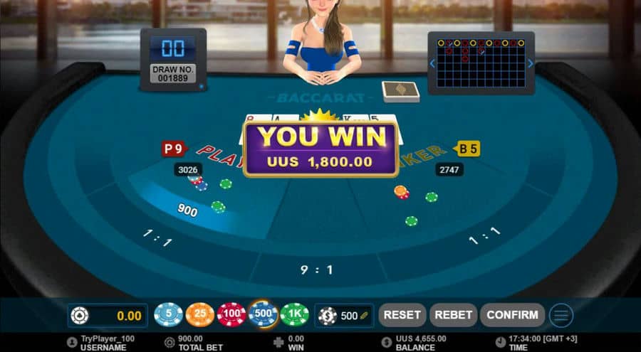 Baccarat Classic — карточная игра, в которую играют против казино с 8 карты, когда вы смотрите на колоду. Ты найдешь 52 карты в одной колоде карт (нет карты джокеров). Общая колода перемешивается перед каждой онлайн-игрой.. Попробовать, нужно сделать ставку на один из следующих исходов: БАНКИР, СПОРТСМЕН или НИДЖЕ. Ставки на многие из вышеперечисленных исходов просто запрещены.. Ставки на игру начинаются с $ 5 к $ 1000. Простые принципы и большие победы ждут вас в Timeless Baccarat от GamePlay.