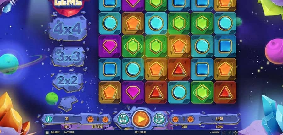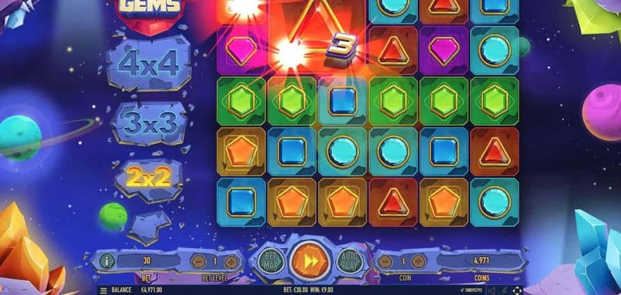 Проложите себе путь к победам галактического масштаба, взглянув на сотую онлайн-игру от Habanero.! Колоссальные драгоценные камни поставляются в трех размерах : 2×2, 3×3, и гигантский размер 4×4. Любой выигрыш приносит повторное вращение, которое приводит к более крупному драгоценному камню.. Три выигрыша подряд привели к Джамбо 4×4 драгоценный камень, который также награждает 6 бесплатные игры!