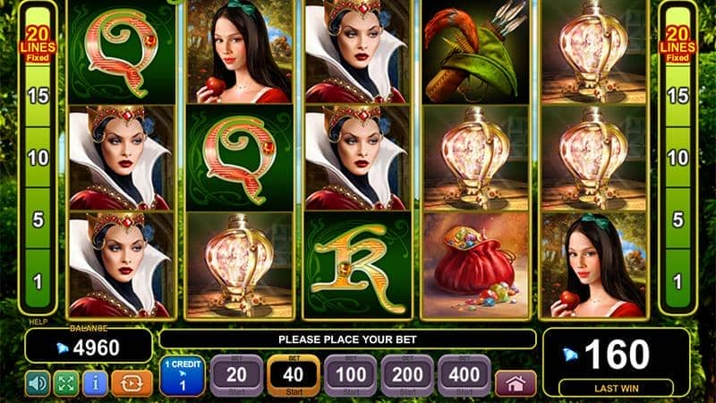 Hi-Ho Hi-Ho это путь к богатству, мы вступаем в игровой автомат EGT Deep Queen – 5-ти барабанный и 20 игровой автомат по мотивам гениальной истории о Белоснежке вместе с семью гномами, плюс Злая Королева, которая пытается убить Белоснежку.