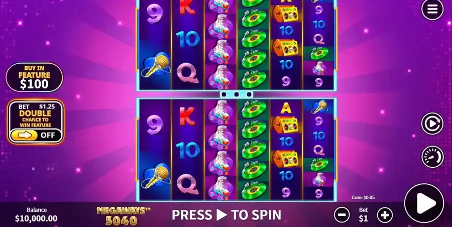 Вдохновленный 70-ми мотив в Disco Mania Megaways Merge очаровательно адекватен., хотя немного общий и безличный, возможно,. Все еще, вы получаете очень странные мощные барабаны, не только из-за двойных сеток, но также и то, что они будут регулярно объединяться на каждом этапе онлайн-игры.. Это дает вам огромный набор барабанов с 7.5+ миллион как выиграть, это не то, что слишком часто даже в этом стиле.