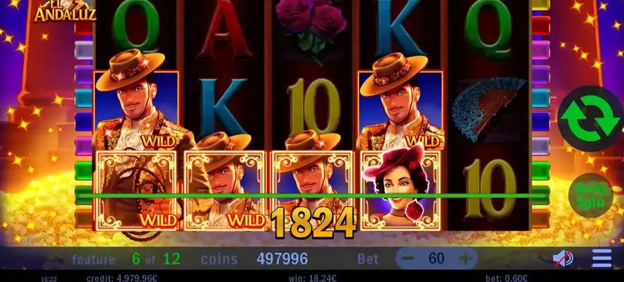 El Andaluz — уникальный слот на мексиканскую тематику любви от провайдера Swintt.. Посмотрите на рассказ об ухаживании Эль Андалуза за своей возлюбленной.. На барабанах, ты видишь цветы, идеи подарков и девушка. Не говоря уже о типичных карточных знаках А, К, Вопрос, Дж, 10. В общем, это 5 * 3 онлайн игра с 10 выигрышные линии. В игре есть свои Особенности, а именно 12 FreeSpins и фиксированные сумасшедшие символы во время бонусной игры. Слот достаточно динамичный и имеет низкий уровень волатильности.. Возврат к игроку (RTP) цена тоже очень большая, но вы, наверное, знаете, что в игре есть диапазон RTP..