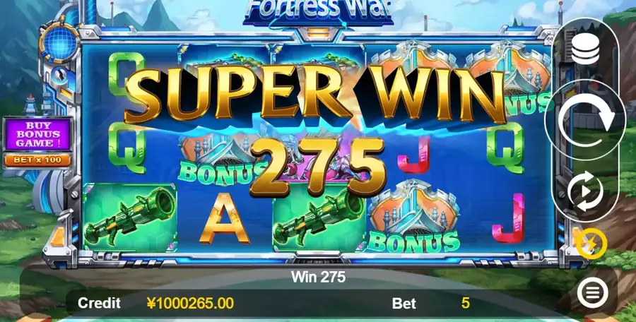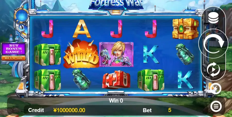 Fortress War — игровой автомат о воинах будущего. Модифицированные люди и различное высокотехнологичное оружие являются основными частями игровых знаков.. Слот Fortress War на самом деле 25 фиксированные линии выплат и знакомый 5*3 дизайн. Официального RTP нет. Основные игровые функции включают дополнительную бонусную игру., Дикие символы, вместе с функцией «Купить поощрительную игру». Вы можете играть в 2 режимы: реальная сделка наличными или просто для удовольствия (бесплатный режим).
