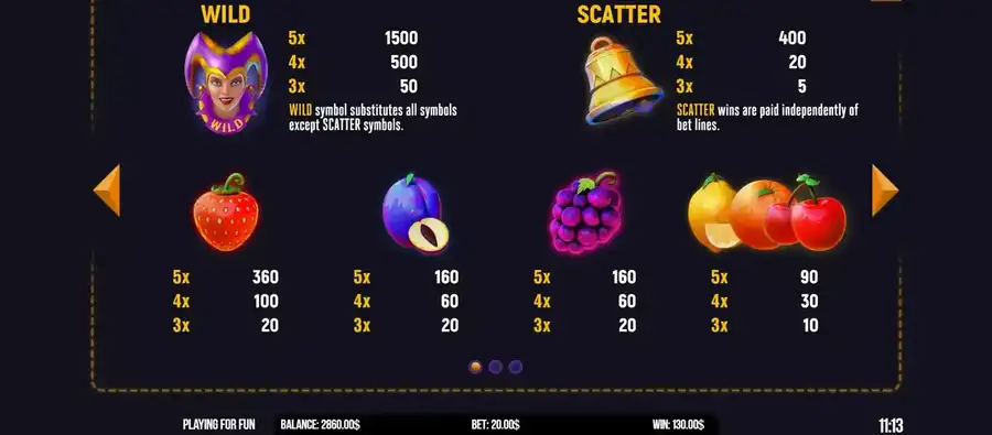 Несмотря на свое название, В слоте Fortune Circus нет элементов и символов, раскрывающих цирковой мотив.. Этот 5 * 3 слот reel относится к классическим игровым автоматам с фруктовым мотивом. Fortune Circus может порадовать людей достойной ценой возврата (RTP) из 96.5%, сочные изображения, чрезвычайно оплачиваемое выражение разброса, и особая символика Wild. В этот слот можно играть в 2 игровые настройки: реальная сделка наличными или цифровыми деньгами (Демонстрационный режим). Так как слот адаптирован под несколько видов десктопных и мобильных платформ, запускай с любых устройств и выигрывай!