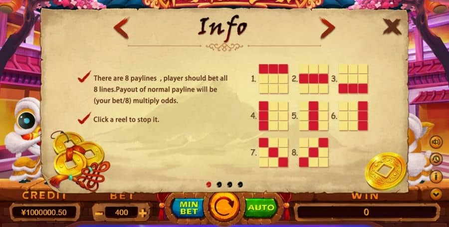 Двойной лев распыляет счастливые деньги, играть в барабаны и гонги, чтобы представить богатство. Земля лотов раскрывает полезную восточную династию Мин. Фонарная гортензия двойной бонус. два раза силы Бонусная точка, увеличивает возможности состава. Львиный разум с мегапризом: нажмите его, чтобы получить 100-кратный дополнительный бонус. вснбсп;