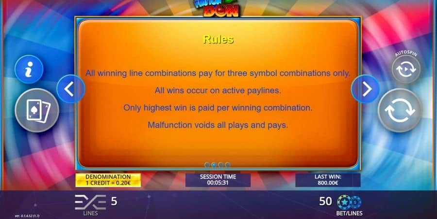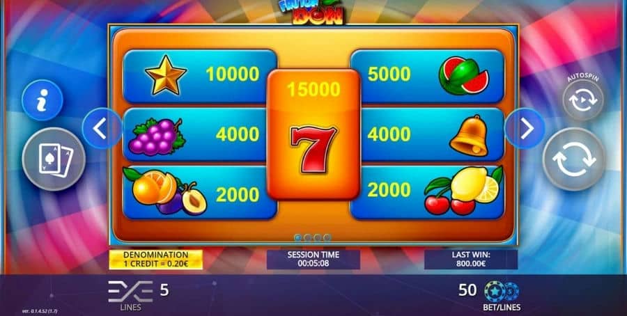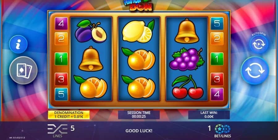 Видео-слот Fruton Don от поставщика онлайн-игр DLV – это 3*3 игра с 5 ставки. Ключевой функцией онлайн-игры является Gamble..