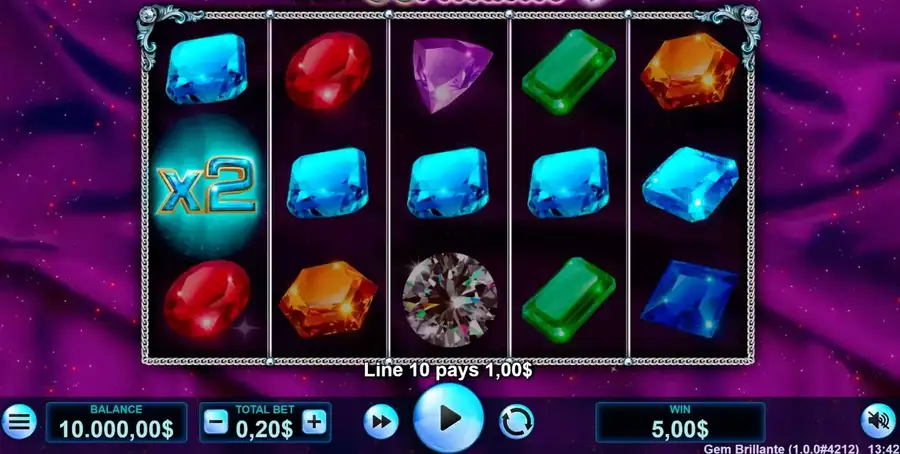 Кто хотел бы сыграть в простой и веселый видео-слот Gem Brilliante от JVL? Слот получил макет 5 катушки, 3 ряды и 10 фиксированные платные линии. Внутри игры вы найдете ценные камни практически на любой вкус. Дикий знак придет к облегчению, если вы не ожидаете, что он сделает абсолютную комбинацию доступной.. В игровом автомате Gem Brilliante от JVL вы можете получить 2X, 3Дикие символы X и 5X, которые появятся на барабане 1. Игрок может делать ставки от $0.1 к $100 за ставку. Gem Brilliante адаптирован для ПК и мобильных телефонов.