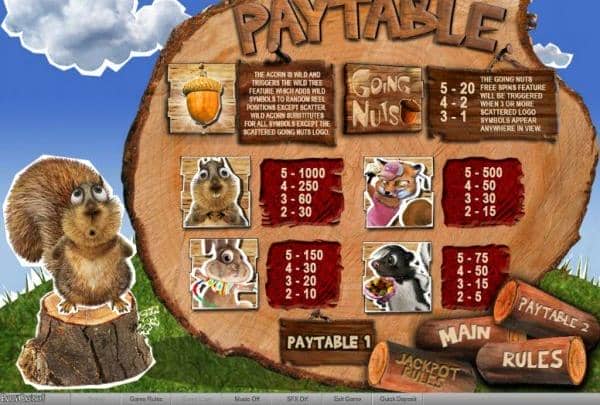 Видеослот ‘Going Nuts’ от поставщика онлайн-игр bwin.party – это 5*3 игра с 30 ставки. Основные особенности игры, как правило,: Дикий, Бесплатные спины, добавлена бонусная игра, Джекпот, Символы разброса, Особенность: Символы замены.