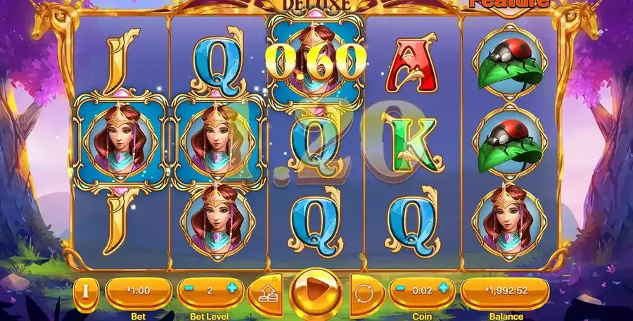 Golden Unicorn Deluxe продается с красочной коллекцией платежных знаков.. Несмотря на то, что у вас будут только базовые ранги карт для низких предложений, все они хорошо продуманы и включают в себя некоторые аккуратные штрихи. После этого, вы найдете высокую оплату, на которых изображены божьи коровки и принцессы.