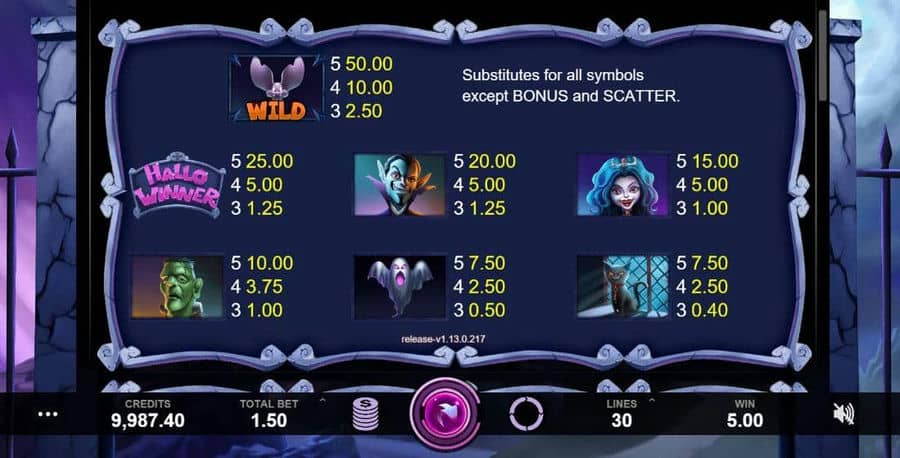 Кино-слот «Hallowinner» от поставщика игр Caleta Gaming — это 5*4 игра с 30 ставки. Слот имеет RTP=96% и более высокую разницу уровней. Основные функции онлайн-игр, как правило,: Дикий, Бесплатные спины, Липкие джунгли, Символы разброса, Бонусная игра: выбрать предметы, Выбор режима FreeSpins, добавлены бонусные символы, Множитель бесплатных вращений, Инструмент для читов.