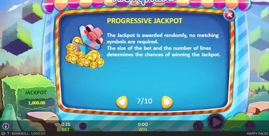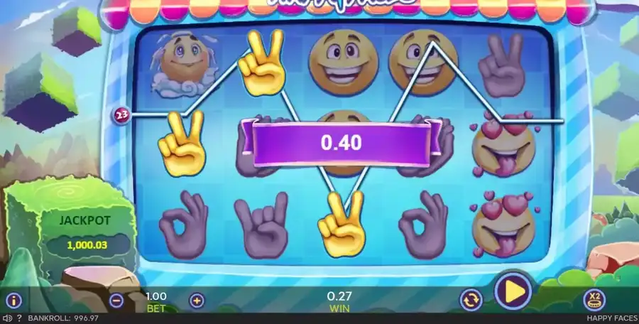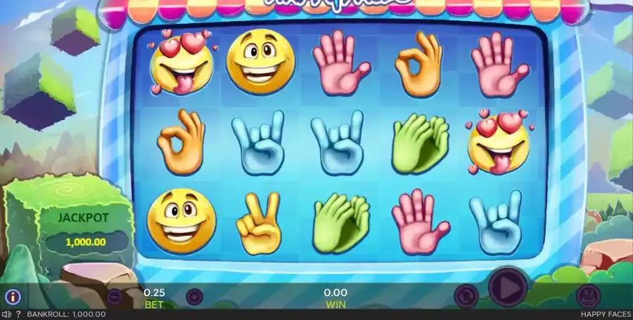 Много слотов с серьезными сюжетами, но часто встречаются прикольные игровые автоматы. Delighted Face — увлекательный онлайн-слот от 888 Игры без определенного мотива. В онлайн-игре множество улыбающихся смайликов.. Так, графически, этот слот прост и включает в себя простые значки, никаких спецэффектов, и мультяшный фон. Happy Faces на самом деле 5 катушки и 25 выигрышные линии. Ключевыми особенностями игры являются: сумасшедший, Разброс, и добавлены бонусные символы, Удвоить, и функция Exploding Wild. В слот Happy Faces можно играть в 2 настройки: реальные деньги сделки или просто для удовольствия (Демонстрационный режим).