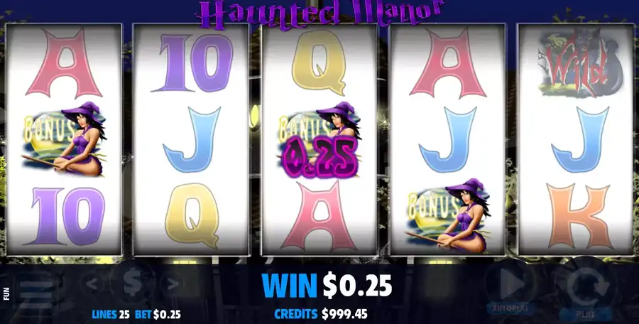 Видео-слот Haunted Manor предлагает погрузиться в атмосферу черной магии, соревнуйтесь в джекпоте и играйте в бонусную онлайн-игру с немедленными победами. Слот с привидениями Manor производится компанией Jackpot Software.. Дизайн барабанов для онлайн-игр не вызывает сомнений, Поместье с привидениями 5 типичные барабаны с тремя рядами знаков. Выигрыши формируются на 25 фиксированные схемы оплаты труда. Теория видеоигр возвращается к игроку (RTP) является 95%. Слот выглядит настолько лаконично, насколько это возможно., тем самым настраивая геймеров на вдумчивую и размеренную игру. Haunted Manor полностью умеет играть на всех современных продуктах.