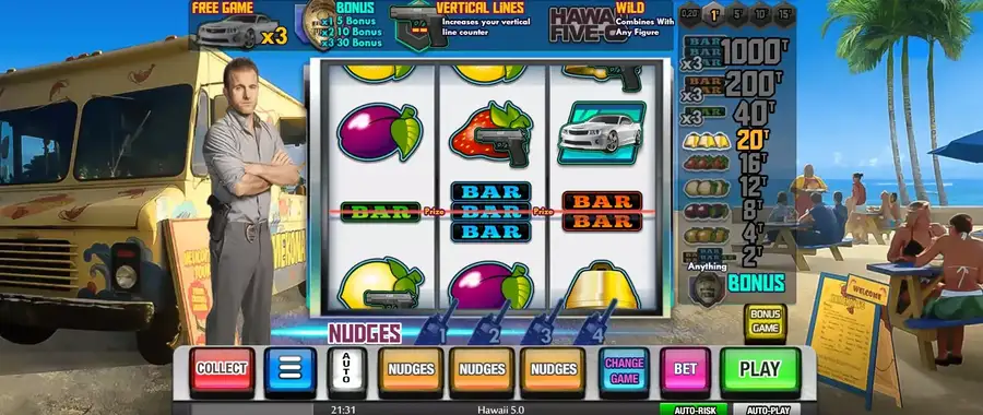 Кто хочет раскрывать преступления на Гавайях, но при этом может много зарабатывать? С новым интересным Hawaii Five-0 видео-слот от MGA Games у вас есть шанс. Популярный детективный сериал стал темой совершенно нового интригующего слота., насколько большое поле 3 * 3 вместе со ставками от 0.20 к 15 евро. Капитан Стив МакГаррет и его команда не успокоятся, пока не будут пойманы все преступники., вы можете легко помочь им. Несмотря на крошечную игровую зону, есть 6 мини-игры в слоте, все они имеют действительно интересные функции, которые помогают выиграть много. Гавайи Пять-0 вы можете посмотреть на нашем сайте в демо режиме.
