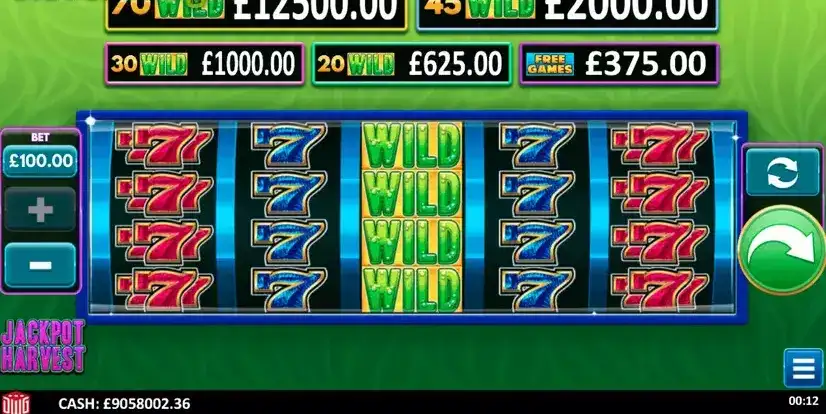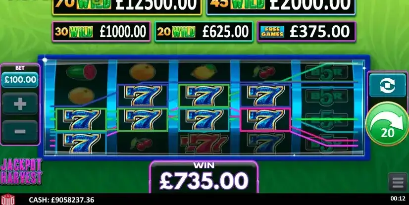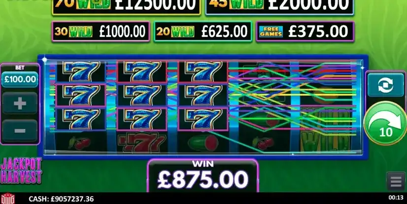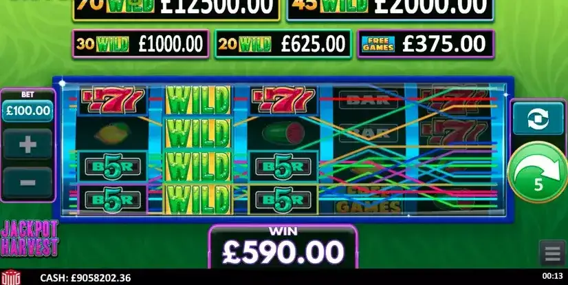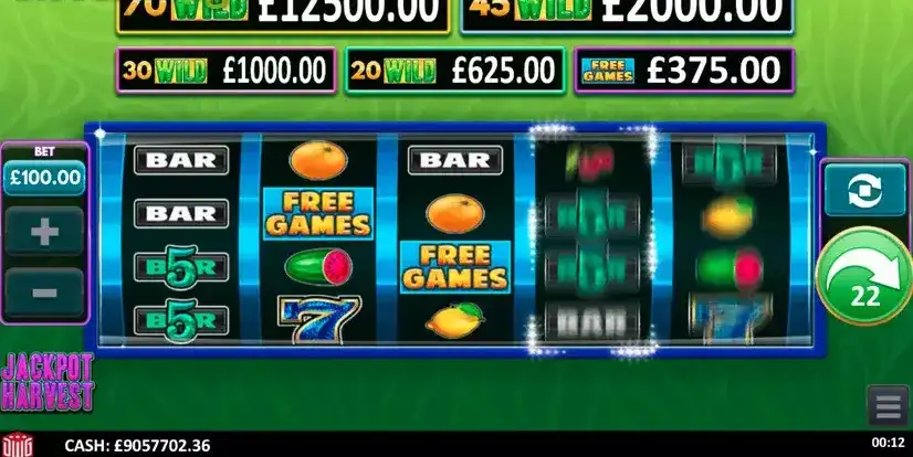 Jackpot Harvest — игровой автомат Design Works Gamings с 5*4 катушка и 40 очертания победы. Особенности сбора джекпота 97.07% Волатильность RTP и MED. Ставки, как правило, включают 0.2 к 100 а так же максимальный шанс выигрыша 125х ставок, которые будут 125000 в €, $ или £. Вы можете легко сыграть в демонстрационную онлайн-игру Jackpot Harvest 100% бесплатно, нажав кнопку «Играть в демо-игру бесплатно».