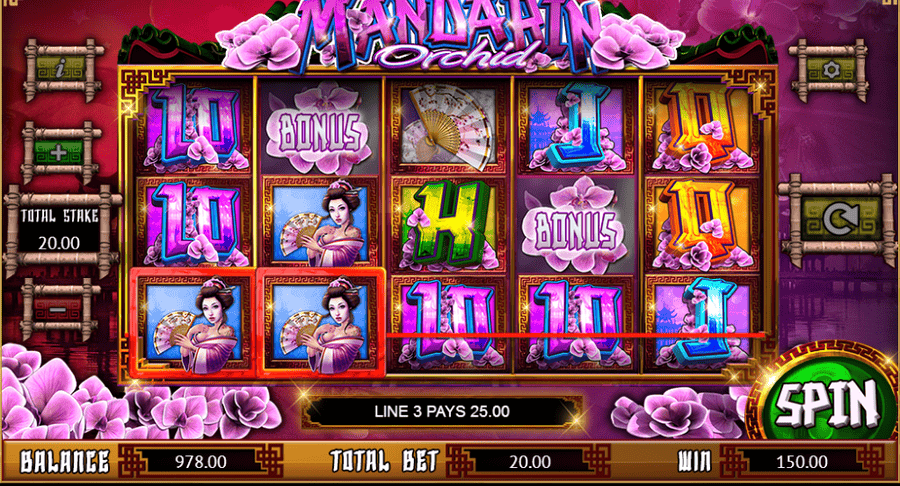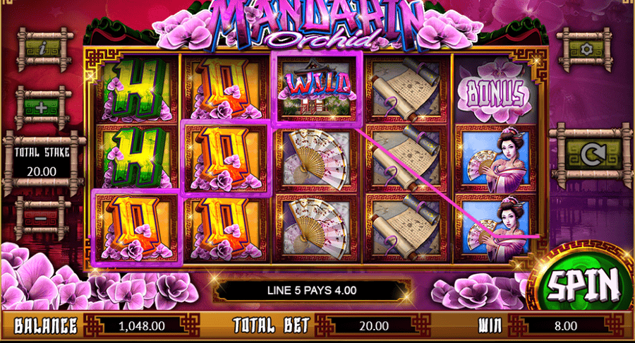 Mandarin Orchid — пятибарабанный автомат., произвольный слот онлайн игра, на основе мотива восточной женщины.