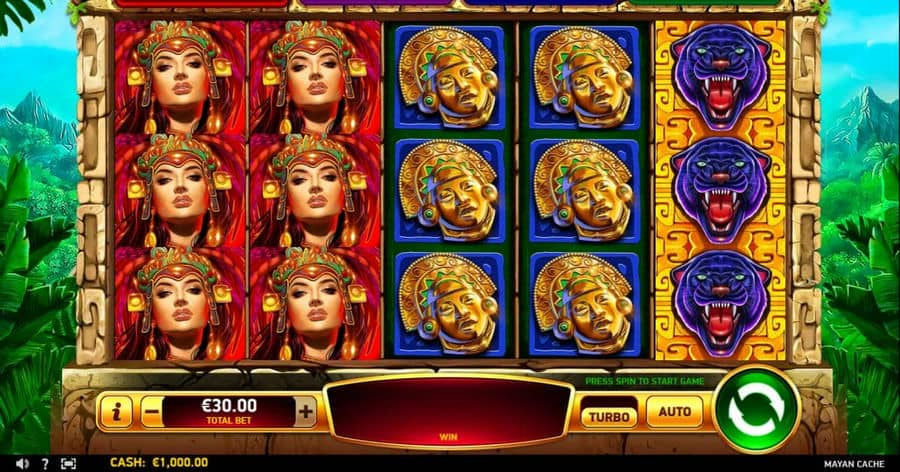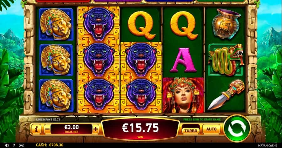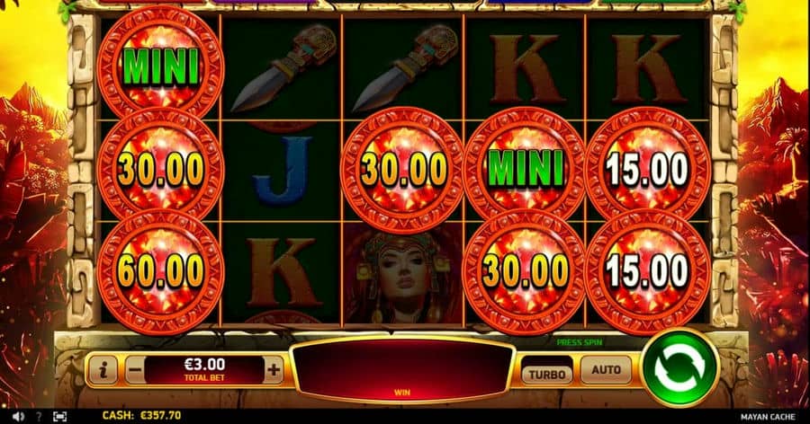 Mayan Cache имеет несколько интересных функций, которые принесут довольно приличную прибыль.. Слот ориентирован на респины, в частности, функция Jackpot Mania.vsnbsp;Дополнительная игра может быть запущена, по крайней мере, 6 Призовые знаки появляются, потому что. Игроки переходят к дополнительному раунду с 3 Респины для начала, и всякие триггерные символы vsnbsp;будут занимать свои должности. Через функцию, на барабанах могут появляться только призовые символы, и всякий раз, когда кто-то приземляется где-нибудь с барабанов, само количество респинов сбрасывается до 3.