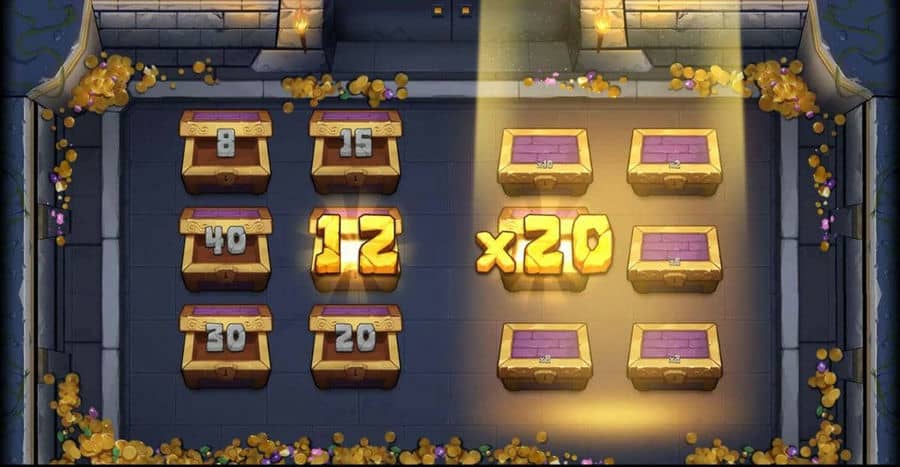 Функция удачи. Выбрав вариант, вы должны выбрать 1 из 6 сундуки, каждый показывает произвольный диапазон бесплатных вращений. Они могут состоять из 8, 12, 15, 20, 30, или 40 спины. После выбора сундука, дополнительный выбор использования с новой партией сундуков. Теперь вам нужно раскрыть множитель, который будет применяться ко всем выигрышам в течение бонусного раунда. Каждая верхняя часть тела может состоять из 2x, 3Икс, 5Икс, 8Икс, 10Икс, или 20-кратный множитель. Кроме того, функция может быть перезапущена во время бонуса еще несколькими скаттерами, который может наградить вас 10 дополнительные спины.