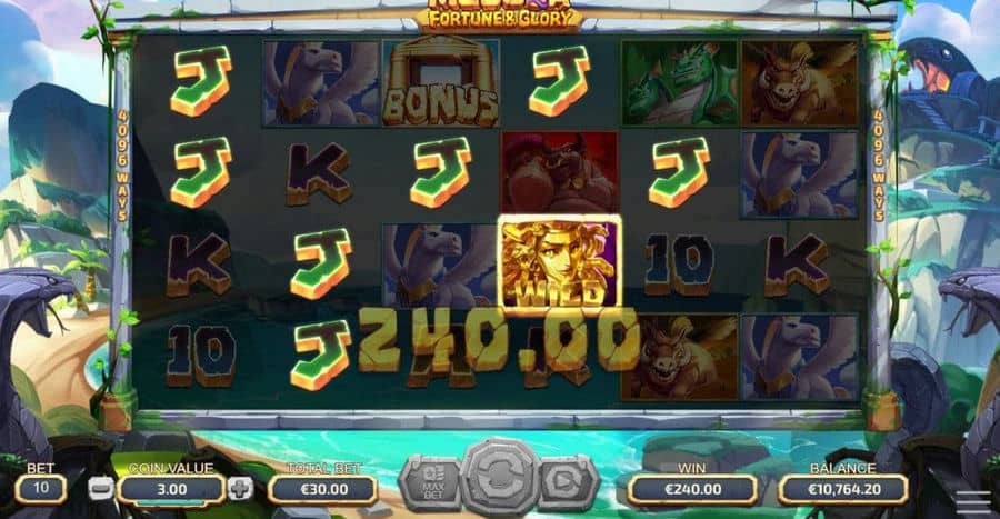 Медуза известна тем, что превращает людей в камень, однако, на этот раз вместо того, чтобы пугать, она помогает вместо страшного, так как она превращает другие знаки в Wilds.. Каждый раз, когда Medusa Wild появляется на барабанах, есть возможность, что оболочка изменит другие знаки на сделки. Это происходит случайно, так что когда это будет, Медуза приводит к 3 змеиные джокеры на барабанах 2, 3, 4, или 5. Функция активируется как во время основной, так и в бонусной игре..