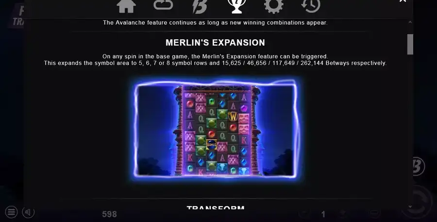 Merlins Fortune — видео-слот о великом и неповторимом волшебнике Мерлине от разработчиков Slotmill.. Вы можете играть в видео-слот Merlins Fortune в демо-режиме, бесплатно. В игровом автомате Merlins Fortune есть 96.27% доходность и высокая волатильность. Особый дополнительный значок преобразует все низкооплачиваемые знаки в символы средней цены. (Драгоценные камни). В игре также есть альтернативные ряды диапазонов и методы выигрыша в основной игре и во время функции Merlins Expansion.. Знаки расширяются до 5, 6, 7 или 8 ряды и 15,625 / 46,656 / 117,649 / 262,144 Betways соответственно. Слот можно получить не только на стационарных компьютерах, но и на современных смартфонах и планшетах.