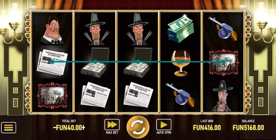 Гангстеры это 5×3 Слот на тему мафии от разработчика Urgent Games, где вы можете выиграть до 3000 раз больше доли. Земля 3 Scatters на барабанах запускают функцию бесплатных вращений, в которой все символы Wild имеют тенденцию быть липкими., и получайте дополнительные награды, распределяя 3 дополнительные символы, которые даютvsnbsp;случайные немедленные денежные вознаграждения.