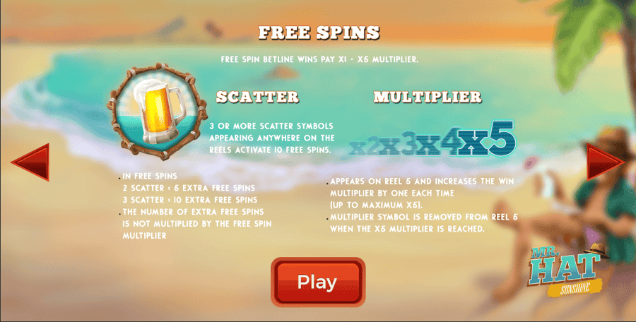 Мистер. Шапка: Sunshine — это успокаивающий игровой автомат с пляжным мотивом и 5 катушки с 3 ряды. 20 линии выплат, распространение дебрей, множители и бесплатные спиновые скаттеры готовы гарантировать приятное и приятное знакомство с онлайн-играми.