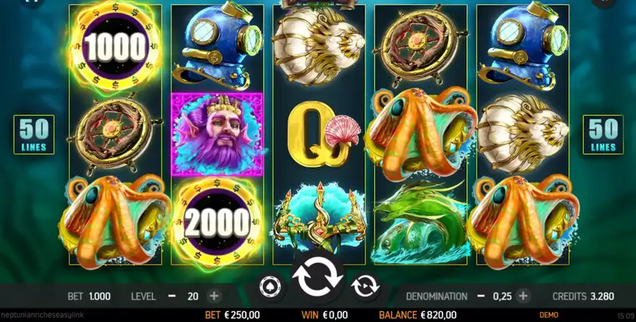 Neptunian Riches Easy$Link — это интернет-слот от FBM Digital Technics, который играет на 5*3 сетка. В целом игра помещается в 50 фиксированные линии. Слот Neptunian Riches Easy$connect выглядит эстетически и тематически привлекательно.. Всякий раз, когда вы играете в этот слот, вы входите в старый подводный глобус. Одним из символов является 7 тематические высокооплачиваемые вывески, 4 знаки низкооплачиваемых карт, также уникальные символы – Простая ссылка, сумасшедший, и разброс. Три символа разброса в любом месте на барабанах активируют функцию бесплатных вращений.. Шесть знаков Simple connect активируют ссылку на веб-сайт Feature.. Игровые ставки входят в ассортимент продукции 0.5 к 250 евро за спин. Слот Neptunian богатство Easy$Lin оптимизирован для мобильных устройств.