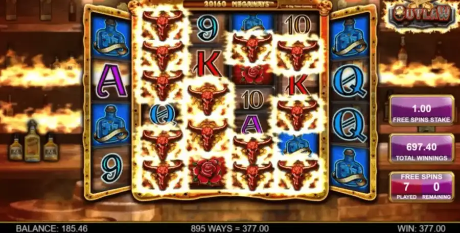 Первый выпуск трилогии The Cult от Gaming., Лил Дьявол, имел выдающийся успех. 2-й выпуск, сумасшедший цветок, на самом деле не очень соответствовал первоначальному, несмотря на значительно более высокий максимальный выигрыш, и время покажет, как сложится эта третья и последняя часть.. Тем не менее, Outlaw имеет гораздо более «мейнстримную» тему Дикого Запада., это должно иметь более широкую привлекательность.