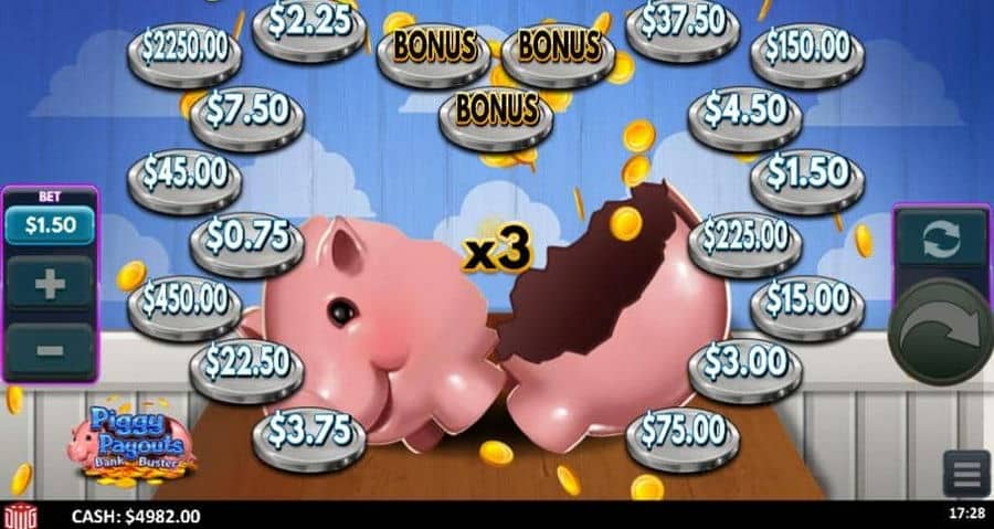 Piggy Payouts Bank Buster — игра от провайдера Design Works Gaming. Разбейте копилку, чтобы получить деньги! Волатильность большая. RTP – 97.06%. Слот имеет следующие функции: Бесплатные спины, Бонусная игра.