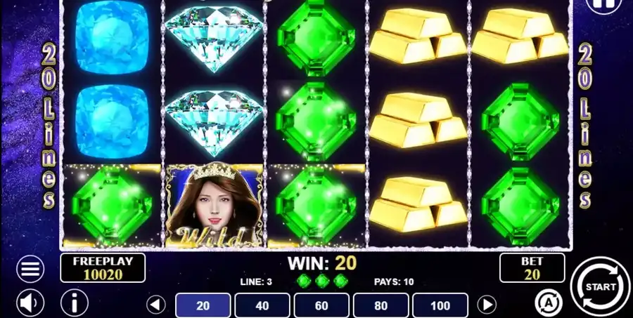 Королева бриллиантов 20 красивый и привлекательный слот с бубновой королевой от 1spin4win. Вы найдете просто 20 линии и обычный макет 5×3, и вы можете найти просто 8 таблички с игровой площадки, вы можете наблюдать: разные бриллианты и кристаллы, Золотые слитки и королева (сумасшедший), Звезда с драгоценными камнями (Символ разброса). Символы разброса тратят деньги независимо от того, образовали ли они линию выплат или нет., посадка 5 из этих символов обеспечивает вам наибольший выигрыш в игре – 500x из выбранных для отыгрыша. Обычно не теряйте времени и попробуйте эту видеоигру прямо на этих страницах в демо-режиме., а затем посетить одно из представленных лицензированных в сети игорных заведений!