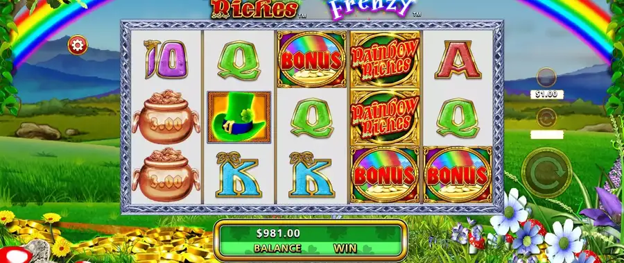 Rainbow Riches Rainbow Frenzy — красочная и увлекательная онлайн-игра про лепреконов от Barcrest. Посещение мира радуг и лепреконов, вам нужно будет подождать, чтобы получить 3-5 бонусные знаки, это активирует 10, 15 и 15 классные бесплатные спины. На протяжении всей бонусной игры, бронза, золотые и серебряные горшки появляются на барабанах с денежными вознаграждениями, в том числе от 2x до 50x. Откройте для себя лепрекона, и тогда он соберет все контейнеры и денежные вознаграждения с экрана дисплея.. Если 2 лепреконы появляются одновременно, они собираются как забрать все контейнеры, так и денежные призы! Обязательно пройдите игру в демо-режиме, и проверьте настоящее онлайн-казино на приз в 2000 раз больше выбранной ставки!