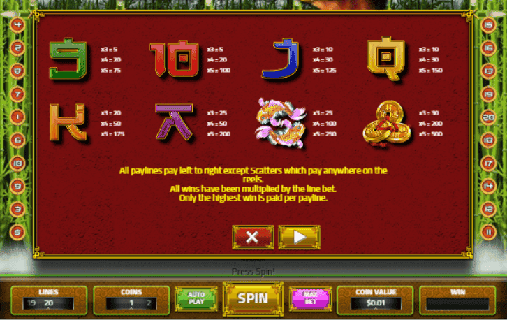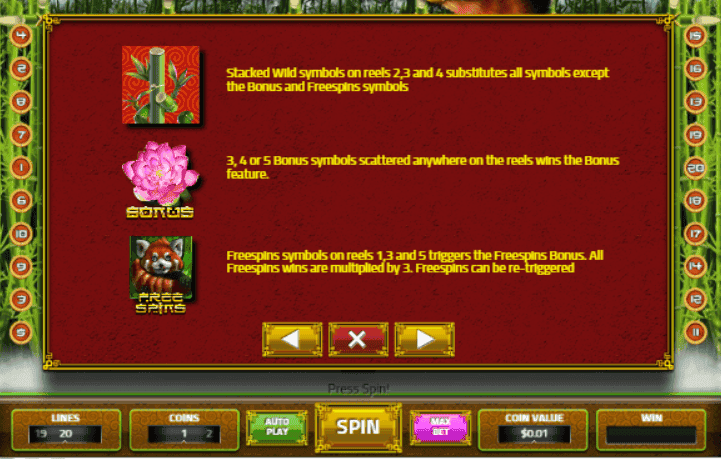 Кино-слот «Красная панда» от провайдера онлайн-игр XIN Gaming — это 5*3 онлайн игра с 20 ставки. Основные особенности игры: Дикий, Бесплатные спины, Бонусная игра, Расширение символов, Символы разброса, Бонусные символы, Множитель бесплатных вращений.