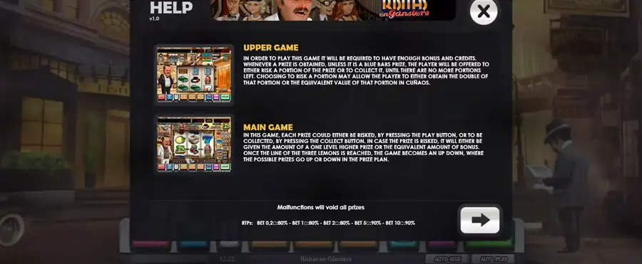 MGA Games продолжит выпускать игровые автоматы об испанских первоклассниках. Внутренний слот, главный герой Риситас, который сразу же покорил умы публики своим забавным смехом. Фруктовый тип слота и атмосфера, ассоциирующаяся с 50-ми годами, сочетают в себе интенсивность.. Риситас представлен из-за босса местной мафии.. Внутри игрового автомата «Risitas en Gansters»!» 6 мини-игры заинтересуют и увлекут самых взыскательных людей. Слот можно получить со всех современных гаджетов.