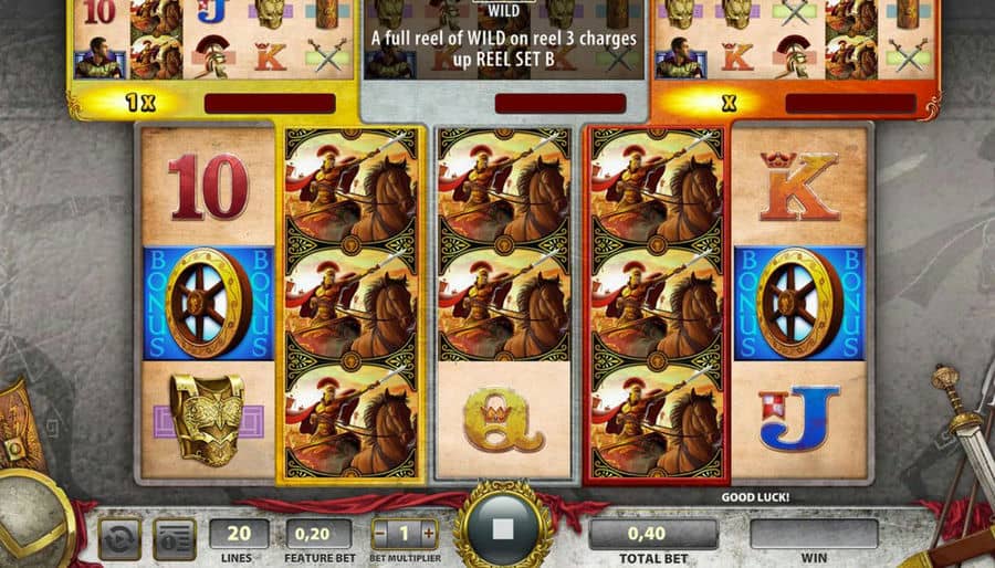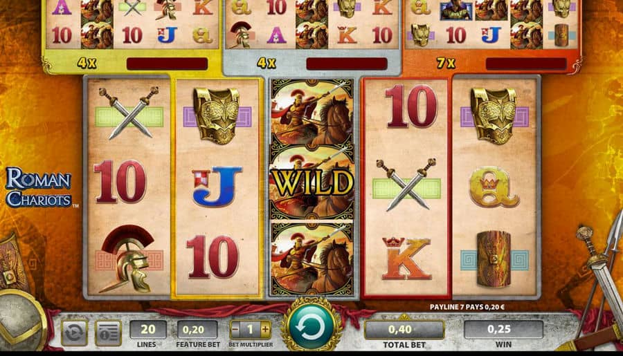 Римские колесницы, самая первая онлайн-игра с участием Катушки с наддувом движок онлайн-игры, это новаторская новая форма игры, позволяющая одерживать суперзаряженные победы.. Соберите полный барабан знаков CRAZY, чтобы зарядить соответствующий барабан, установленный выше.. Продолжайте выставлять счета за барабаны выше, чтобы улучшить множитель для огромных вариантов выигрыша.. Всякий раз, когда игрок с мячом получает знак SPIN относительно пятого барабана., заряженные барабаны выше будут вращаться, предлагая игрокам шанс выиграть большой. Но будьте осторожны: что весь гонорар может уйти с одним неудачным представлением!