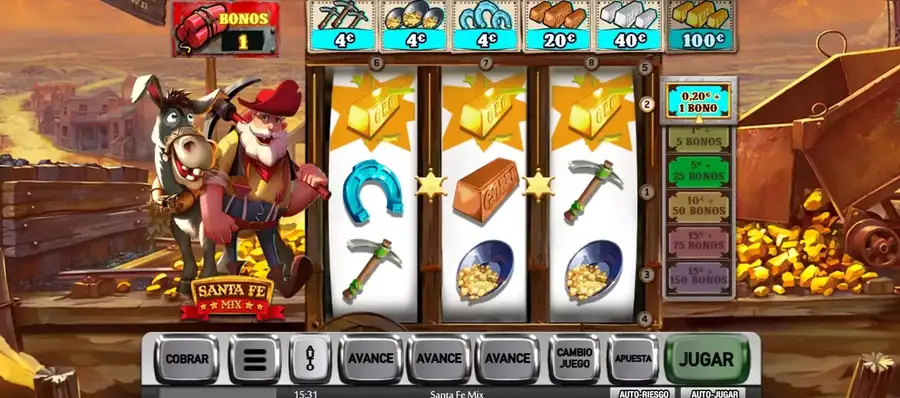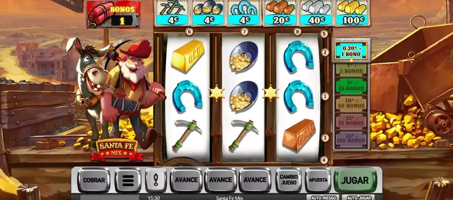 Золотая температура снова применима, и может наградить всех желающих и храбрых людей действительно щедро. На свежем воздухе на западе, есть таинственный город, где собираются все, кто хочет разбогатеть. Присоединяйтесь скорее, пока еще есть золото, в интересном игровом автомате Santa Fe Mix от MGA Games.. Чтобы иметь возможность выиграть, Вы хотите выяснить размеры ставки (от 0.20 к 15 евро), и управлять катушкой, 3 * 3 раскладка и волатильность Medium в слот. Поощрение общей игры происходит в слоте, если вы сделаете необходимое сочетание практических знаков, тогда вы получаете возможность выиграть главный приз, его 15,000 евро! Игровой автомат Santa Fe Combine адаптирован для ПК и смартфонов..