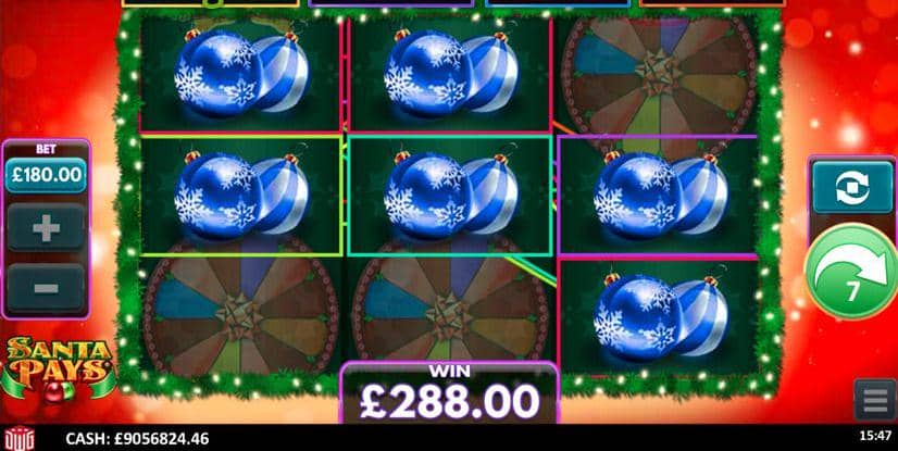 Santa Pays — игровой автомат Design Works Gamings на рождественскую тематику с 3*3 катушка и 27 выигрышные линии. Санта платит предложения 96.19% RTP и СРЕДНЯЯ-ВЫСОКАЯ волатильность. Ставки варьируются от 0.3 к 180 и максимальный шанс выигрыша составляет 340x ставок, который 61000 в €, $ или £. Вы можете весело провести время с демо-игрой Santa Pays онлайн 100% бесплатно, просто щелкнув переключатель «Играть в демо-игру бесплатно».