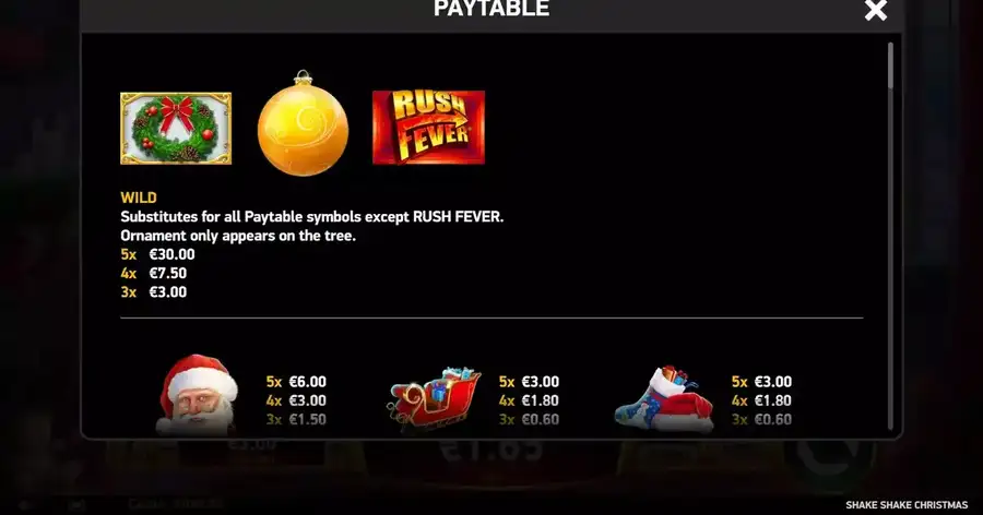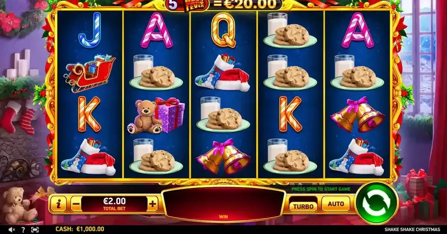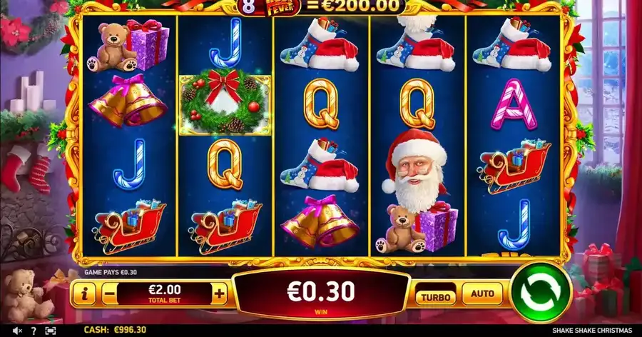 Shake Shake Christmas time — игровой автомат, наполненный рождественской обстановкой от дизайнеров Ruby Play.. У Санты всегда есть много электрошоков для ваших нужд! Вращайте барабаны и получайте возможность повысить свою ставку на 1100 раз. Вы можете попасть в отпускную среду по всем продуктам, выбрав ставку из 0.2 к 30 евро за спин. Слот имеет функцию автоигры., где вы могли выбрать вокруг 500 спины. RTP для Shake Shake xmas 96.48%, Частота ударов 32.1%, волатильность средняя. Встряхните рождественскую елку, чтобы получить еще больше денежных вознаграждений., бесплатные спины, и множители!