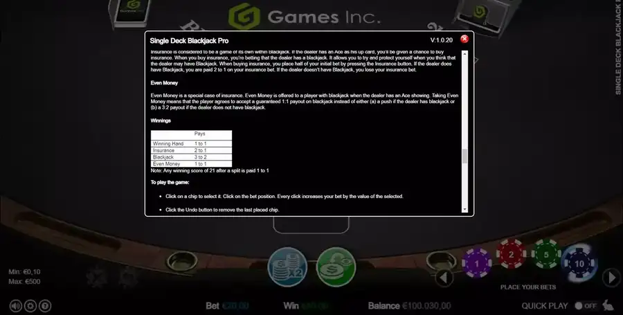 Одноколодный блэкджек — уникальная онлайн-игра от Games Inc.. Для одноколодного блэкджека, из-за того, что название указывает, всего одна колода 52 карты требуется. Ставки признаются так же, как и в традиционном блэкджеке. Вы можете делать ставки от 0.1 к 500 евро. Правила, связанные с онлайн-игрой, чрезвычайно просты., победить дилера и получить как можно ближе к номеру 21. играть в одноколодный блэкджек можно не только на стационарных компьютерах, но и на современных смартфонах и планшетах.