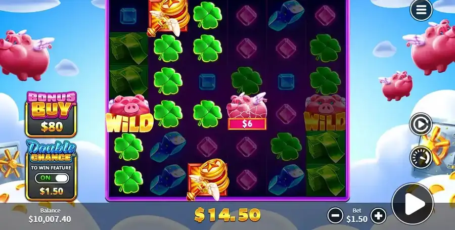 Стандарт волатильности Sky Piggies: средней высоты, но у нас нет официальной информации о его джекпоте. Мы можем сообщить вам, однако, как можно насладиться слотом для ставок между 0,10 фунта стерлингов и 450 фунтов стерлингов. Теоретический RTP слота тогда довольно сочный., часы в 96.50%.