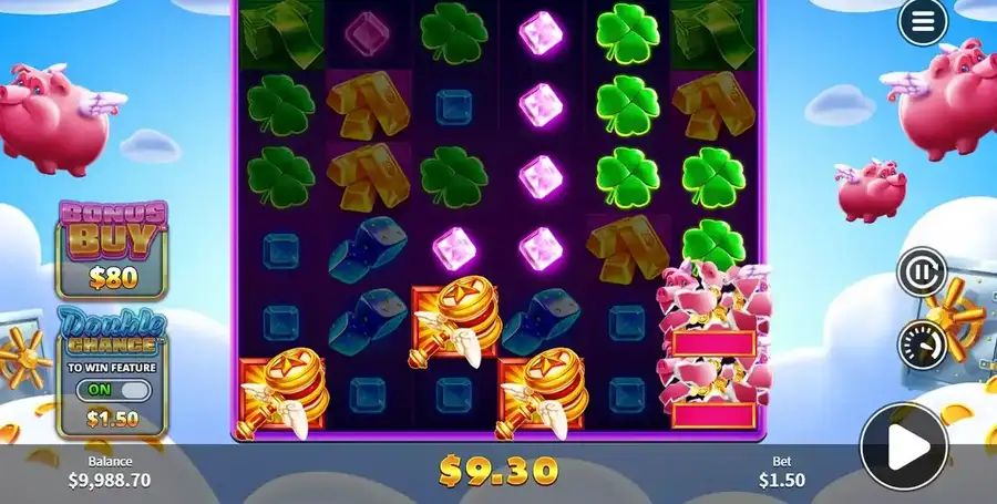 Sky Piggies могут закрепиться на доске с различными множителями ставок., которые посещают целых 50x. Если вы обнаружите их все вместе с изображением молота, Вы будете скомпилировать все значения в представлении. Если вы получаете более одного значка молота, вы достигнете всех значений в поле зрения несколько раз, это может привести к некоторым аккуратным выплатам.