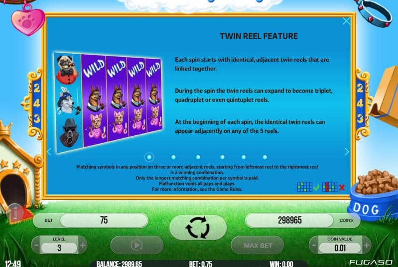 Видео-слот «Smoking Dogs» от игрового провайдера Fugaso — это 5*3 игра с 243 ставки. Слот имеет RTP = 91,28% и MED.? разница суммы. Основные особенности онлайн-игры:: Дикий, Джекпот.