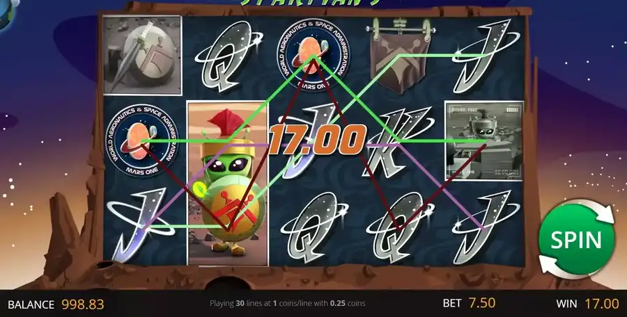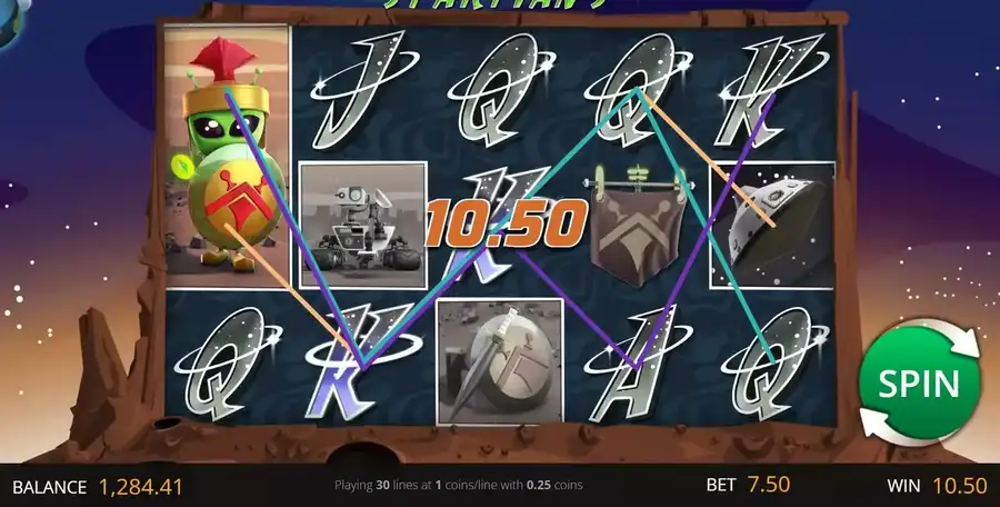 Spartians — игровой автомат на тему НЛО от дизайнера Genii., в котором люди могут выиграть почти в 2000 раз больше. Основные функции включают в себя Stacked Multiplier Wilds и совершенно бесплатные спины..
