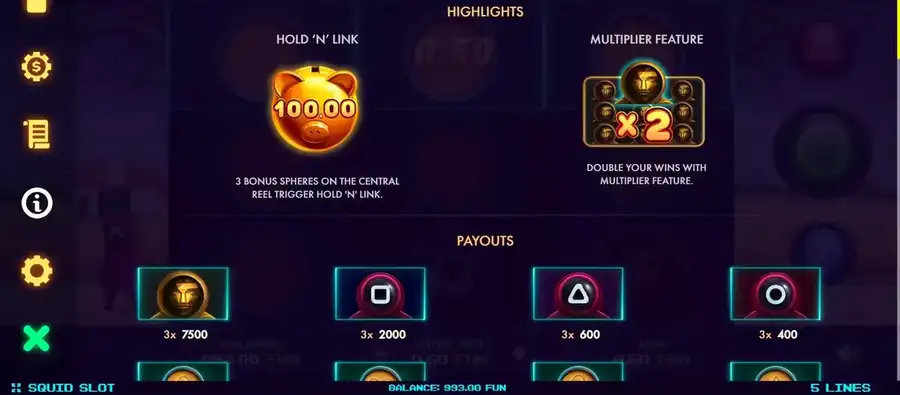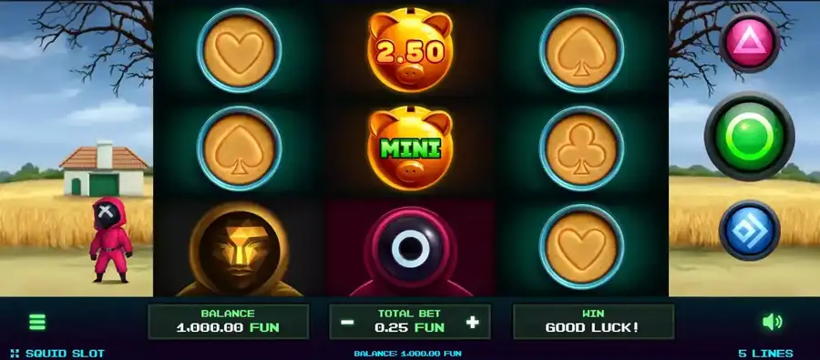 Squid Slot — видео-слот с таинственными людьми в масках и денежной тематикой от NetGame.. Устойчив к фоновому воздействию 3 барабаны для онлайн-игр, было поле, персона, и резиденция. Всего в игре восемь основных символов., бонус Hold N connect, Функция множителя, три формы джекпотов (до х456 вейджера). Теоретический возврат игроку из-за этой игры в основной онлайн-игре составляет 96.03%. Слот доступен не только на стационарных компьютерных системах, но и на современных смартфонах и планшетах..