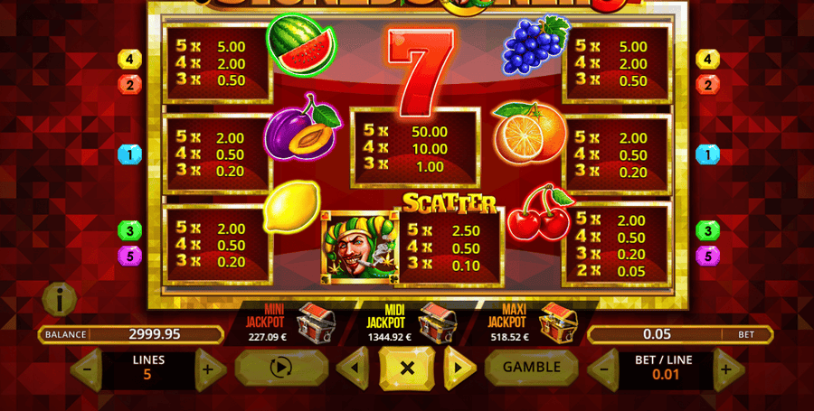 Видео-слот Stoned Joker 5 от поставщика онлайн-игр Fugaso является 5*3 онлайн игра с 5 ставки. Слот имеет RTP = 95,66% и дисперсию суммы MED.. Основные функции онлайн-игр, как правило,: Джекпот, Символы разброса, Азартная игра.